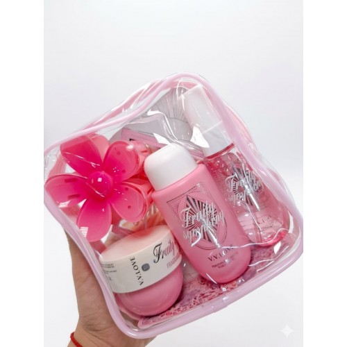 Este kit es ideal para traslados o como detalle de regalo debido a su diseño compacto y presentación estética.
