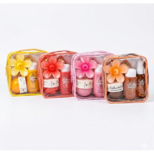 Este kit de viaje está diseñado para el cuidado corporal completo en un formato práctico y portátil. Los elementos incluidos en cada conjunto son los siguientes: